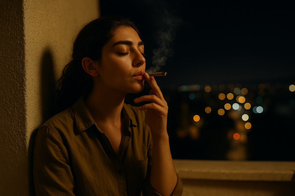 אני עומדת במרפסת, החלון חצי פתוח, ריח של נענע מהתה של אמא מתערבב עם עשן הג’וינט שבני השאיר.