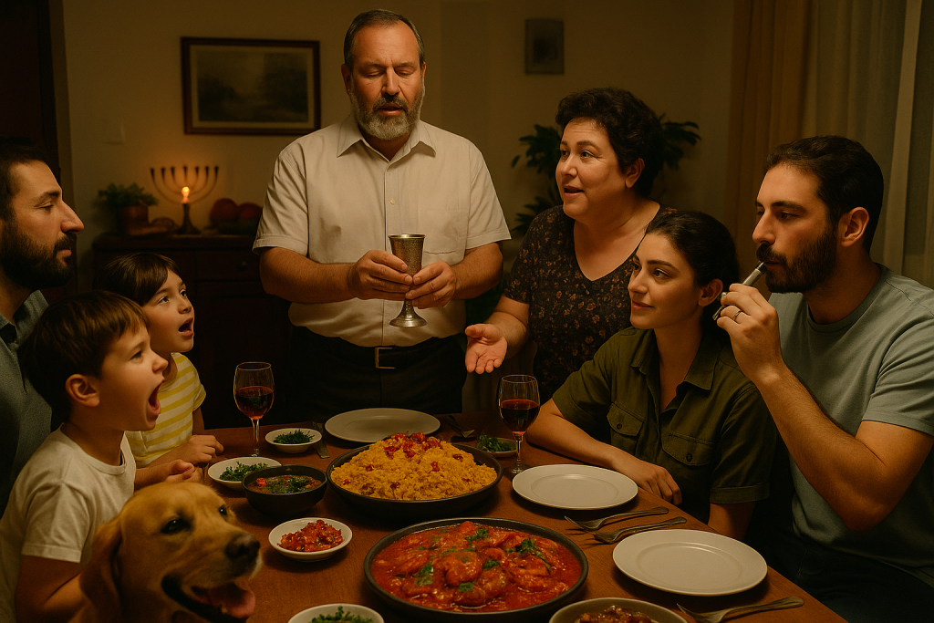 קריית אליעזר, ערב שבת. סלינה חיילת מג״ב חוזרת הביתה, צ׳מפו נובחת מהתרגשות, הילדים רצים, האחיות צורחות, האמא בוחשת, האב מקדש, והשולחן נפתח כמו מדינה קטנה של אהבה, ריח, ותיקון.