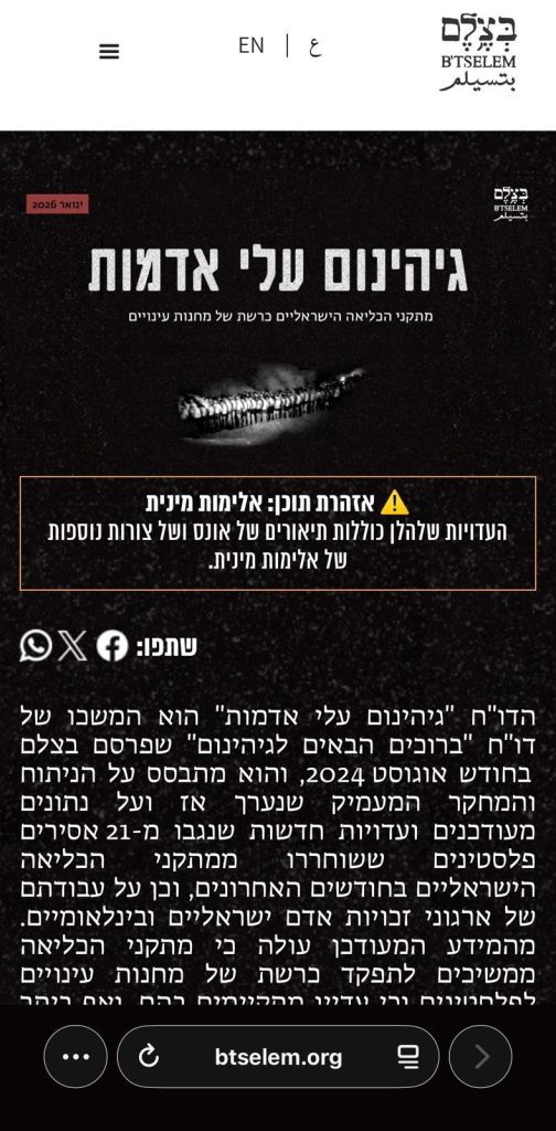 הדף שאליו מוביל הקוד איננו מרכך את המסר אלא מחריף אותו. כבר בכותרת מופיע הביטוי “גיהינום עלי אדמות”, ובהמשך נטענות טענות קשות על אלימות מינית והתעללות שיטתית. השפה חריפה, חד משמעית, ומציגה תמונה קיצונית ביותר של מערכת הכליאה. מדובר בתוכן שמטלטל גם קורא בוגר ומודע, ועל אחת כמה וכמה עובר אורח שמגיע למרחב תרבותי עירוני ואיננו מצפה להיחשף לחומרים כאלה באמצע היום.