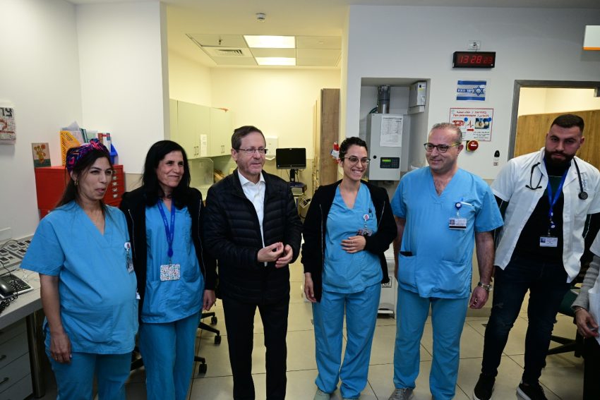 נשיא המדינה ביקר במרכז הרפואי לגליל הסמוך לגבול לבנון ושיבח את הצוותים המטפלים בפצועים גם במתחם התת קרקעי הממוגן