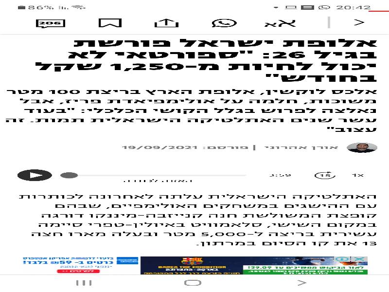 אלופת ישראל החיפאית באתלטיקה מרוויחה 1250 שקל לחודש ושוקלת פרישה