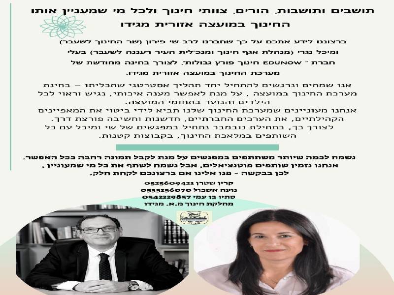 המועצה האזורית מגידו החלה בתהליך בחינת מערכת החינוך במועצה בהובלת שר החינוך לשעבר הרב שי פירון ומיכל ניגרי