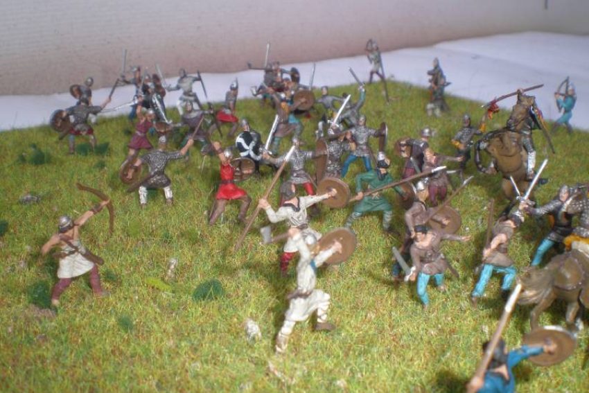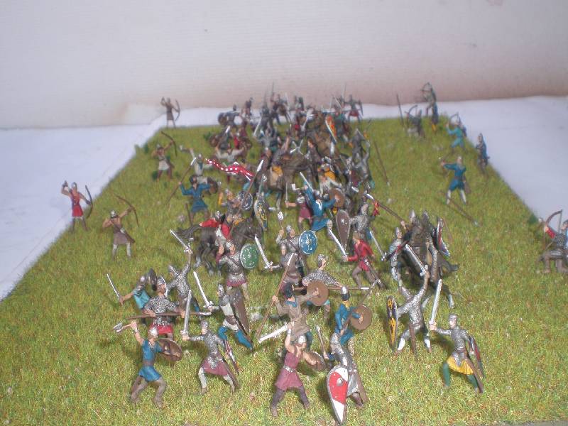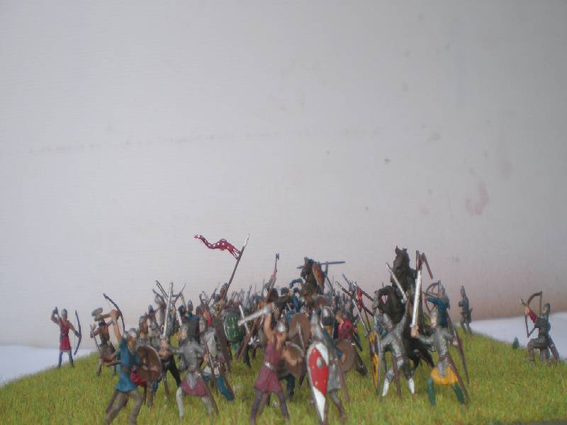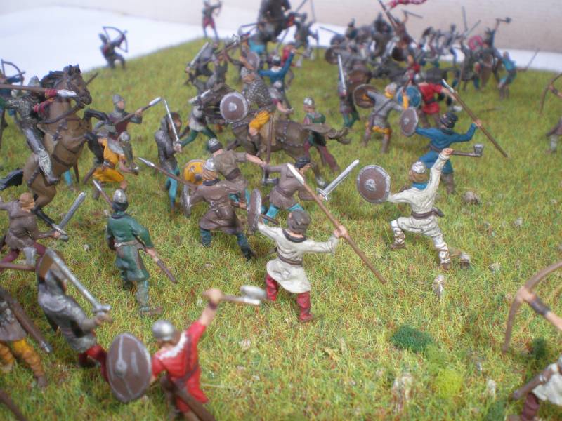 המלך האנגלוסקסוני הרולד התבצר על גבעה ליד הייסטיגס ואילו הנורמנים של וויליאם תקפו במעלה הגבעה, תוך ששני הצדדים מקדמים גם את הקשתים לקו הראשון.