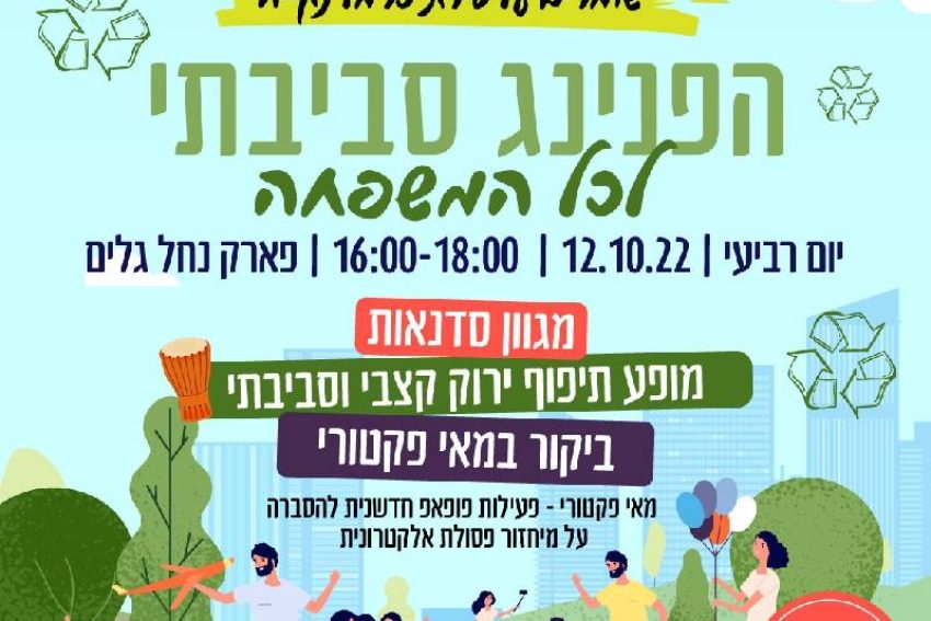 ביום רביעי, 12.10.2022, חול המועד סוכות, יתקיים בפארק נחל גלים (רח' החרוב 32) הפנינג סוכות סביבתי לכל המשפחה (כניסה חופשית לתושבי העיר).