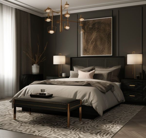 שילוב גוונים כהים בפלטת צבעים ניטרלית יוצרים נגיעות של יוקרה ומודרניות. משחק אור וצל עם גוונים כהים יותר, יכול לעורר תחושה של מסתורין ושלווה, מה שהופך את החלל למקום מנוחה ורגיעה. בנוסף, משחק עם טקסטורות וגימורים מעצים את העניין החזותי, מקירות מט ועד אביזרים מבריקים.