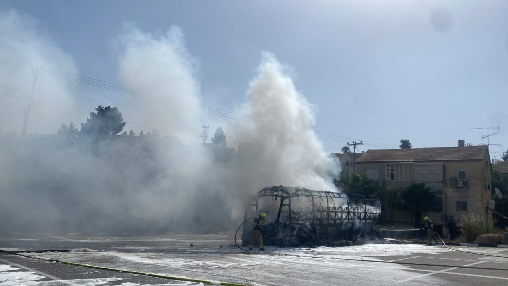 שריפת אוטובוס ומספר רכבים פרטיים בקרית אתא