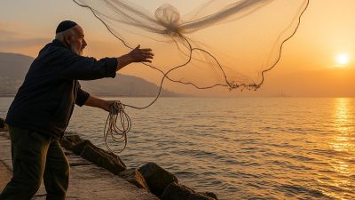 השמש החיפאית לא יורדת – היא נמרחת. כתום כבד זולג על המפרץ כמו צבע שמישהו שפך מתוך דלי חלוד, מתערבב עם זהב חיוור ועם