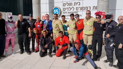 טיפוסים מדליקים: הפנינג צבעוני במיוחד של כבאות והצלה – יחידת להבה פתח את חגיגות פורים למען ילדי רמב"ם לא בכל יום מגיעים גיבורי על