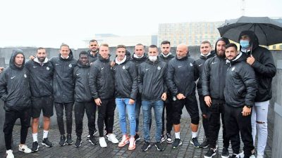 השחקנים, הצוות ונשיא המועדון, הקדישו את הבוקר לביקור באנדרטה לזכר קורבנות השואה, שנמצאת בלב בירת גרמניה. הנשיא, יעקב שחר: "עצם זה שאנחנו משחקים כשווים